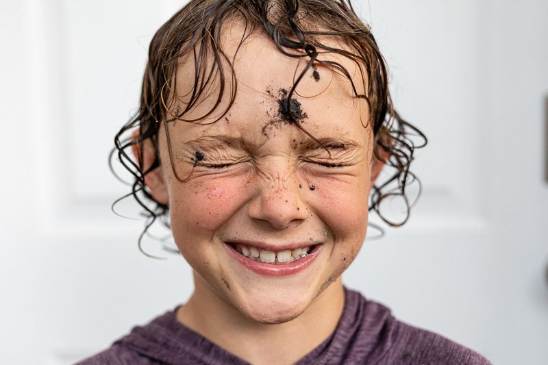 My point is to say that for me, the best photos are the unscripted ones. The ones where the kids get to just be themselves. These moments are real moments, and there is so much information about this period in time packed into these photos. These were taken at a time where my kids are still pretend playing, still willing to get dirty. They’re not “too cool” for mom and dad yet. They play together, albeit it’s a bit of a love/hate relationship. They are wearing some of their favorite clothing pieces. The purple shirt my son is wearing in the muddy face photo is so loved, in fact, that it’s gotten holes in it and has been mended more than once. When I look at the top photo, with my daughter on the ground in skates, I think about the probably hundred times or so that she’s insisted on going around the block in those skates, despite the fact that she doesn’t really skate with intention, and ends up on the ground every 50 feet or so. It’s comical every time she falls–it’s just her personality. And the nerf battle photo. My son gets insanely into nerf battles. He’s all in. And I get his shouts and enthusiasm in my head when I look at that photo.