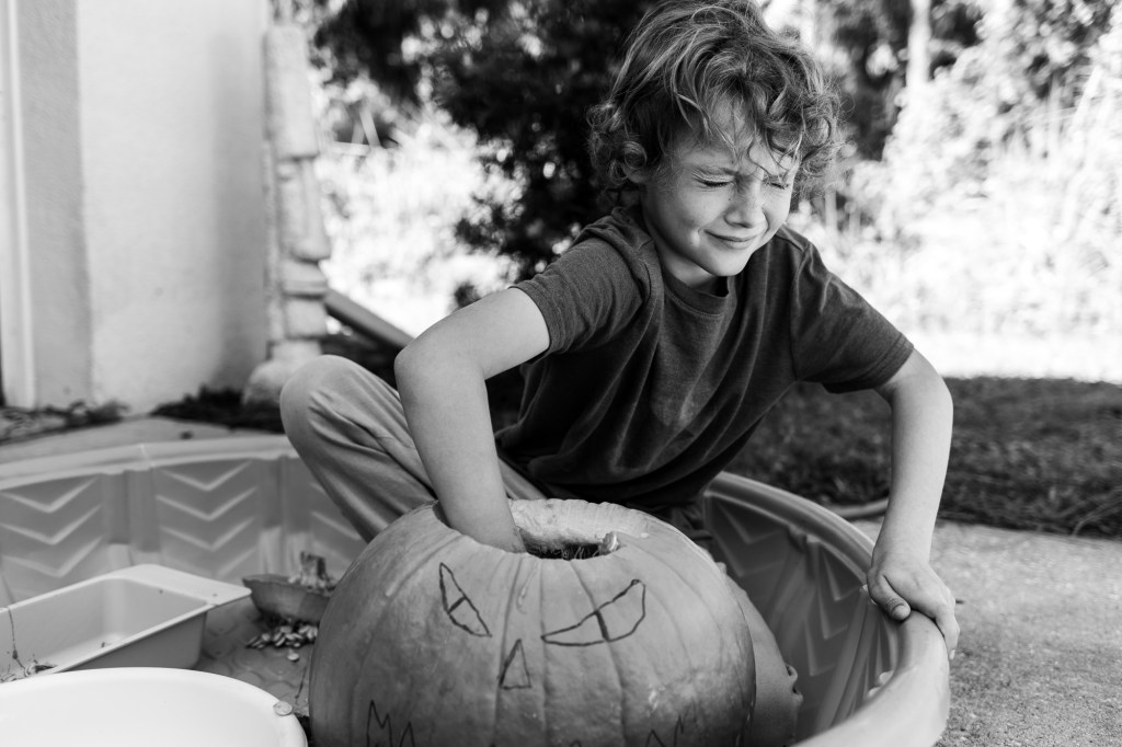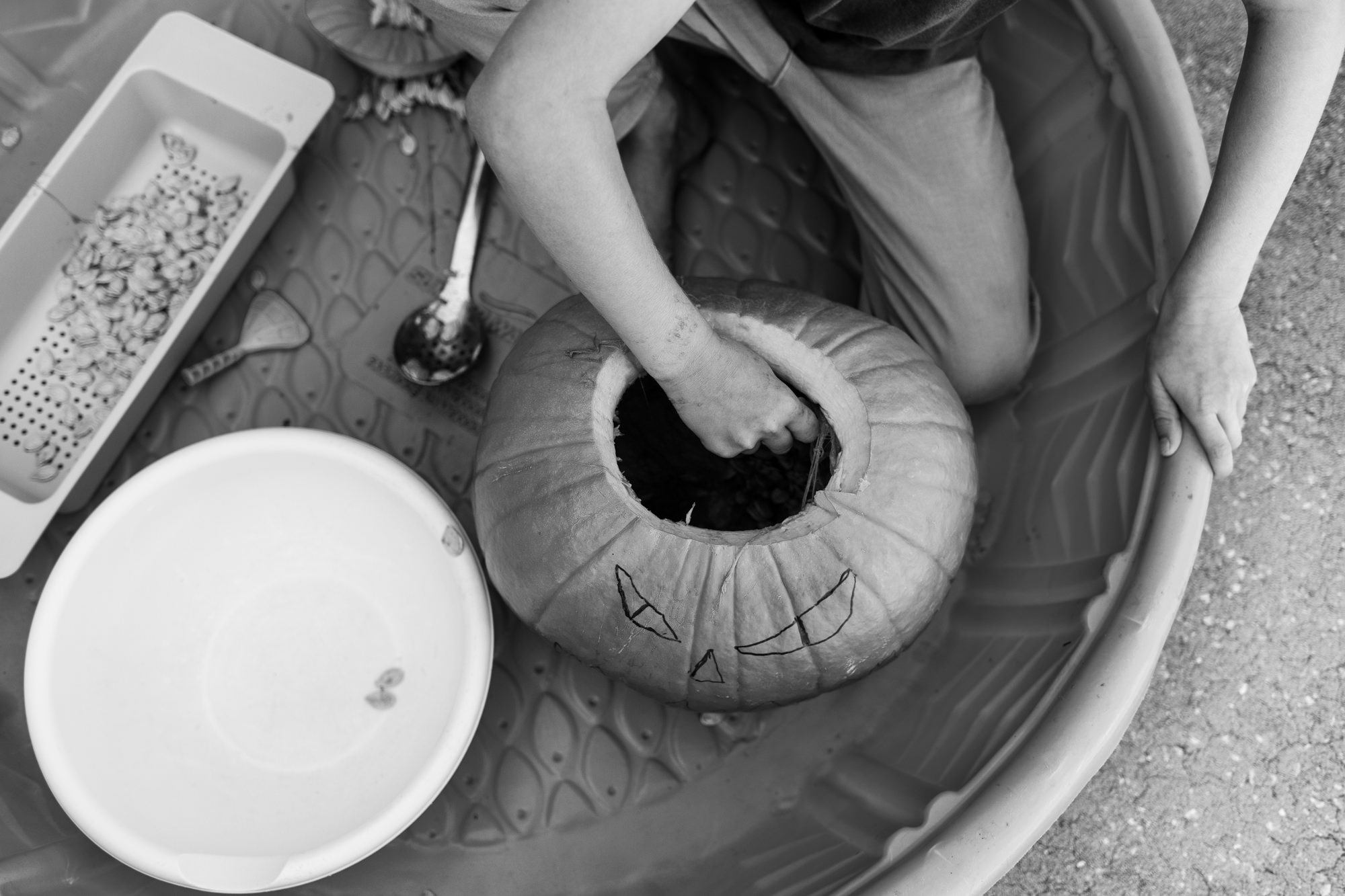 We made the kids gut their own pumpkins this year, which was glorious. 10/10 recommend. Even though they belly ached about it the whole time, they were motivated enough to see the project through. And, we got a ton of pumpkin seeds out of the 3 main pumpkins plus extra out of some of the smaller ones.
