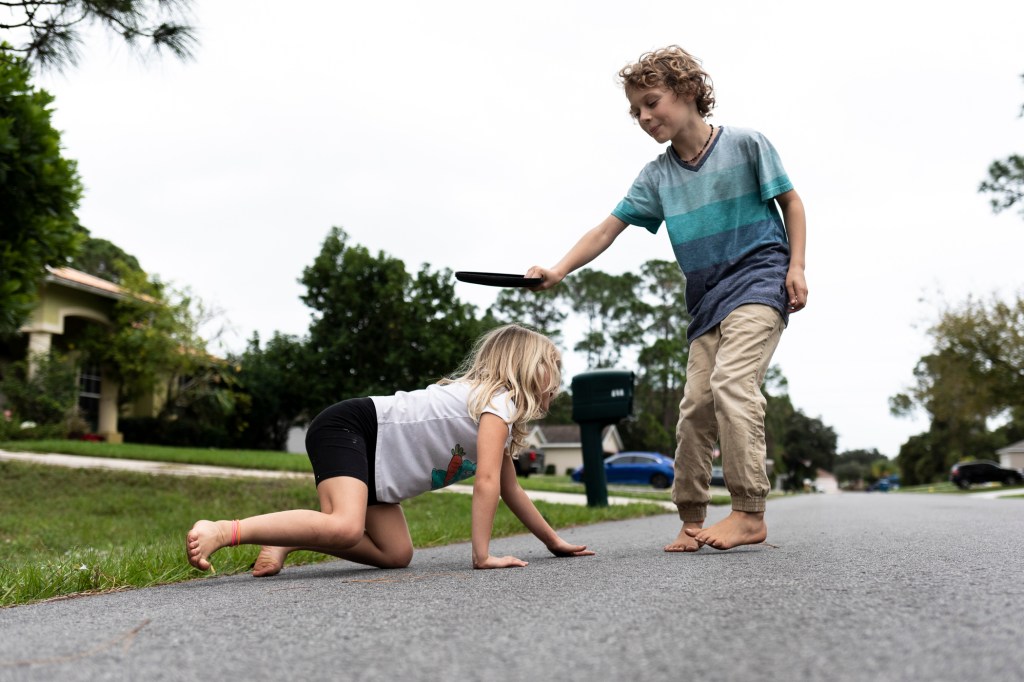 Zoey’s favorite way to play is to steal whatever object Kevin and Carson are tossing back and forth. Ball, frisbee, football. She wants it, and she wants to run with it. Piper, on the other hand, is thrilled to simply be included in the action, and just wants to be a part of the sibling gang.