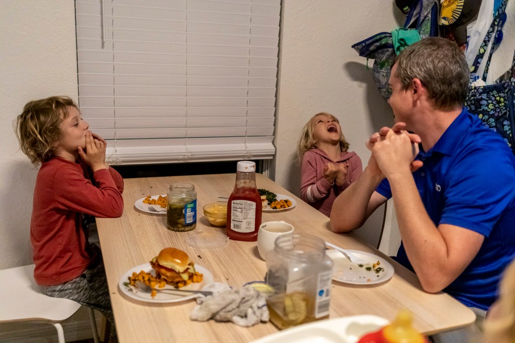 Dinner time. Always an event. Always overwhelming. The kids are cackling and joking and kicking each other under the table. Piper is shouting and singing, trying to fit in with all of the other noise. Meanwhile, Kevin and I are just trying unsuccessfully to talk over the cacophony to share details of our days with each other. I know, I know…one day the meals will be silent and we’ll miss the chaos.